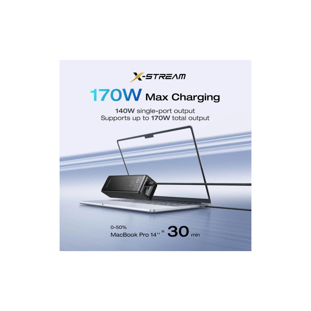 170W pikalataus: samanaikainen moniporttinen ulostulo jopa 170W, tukee jopa 3 laitteen lataamista samanaikaisesti. 140W maksimi yhden portin latauksessa.