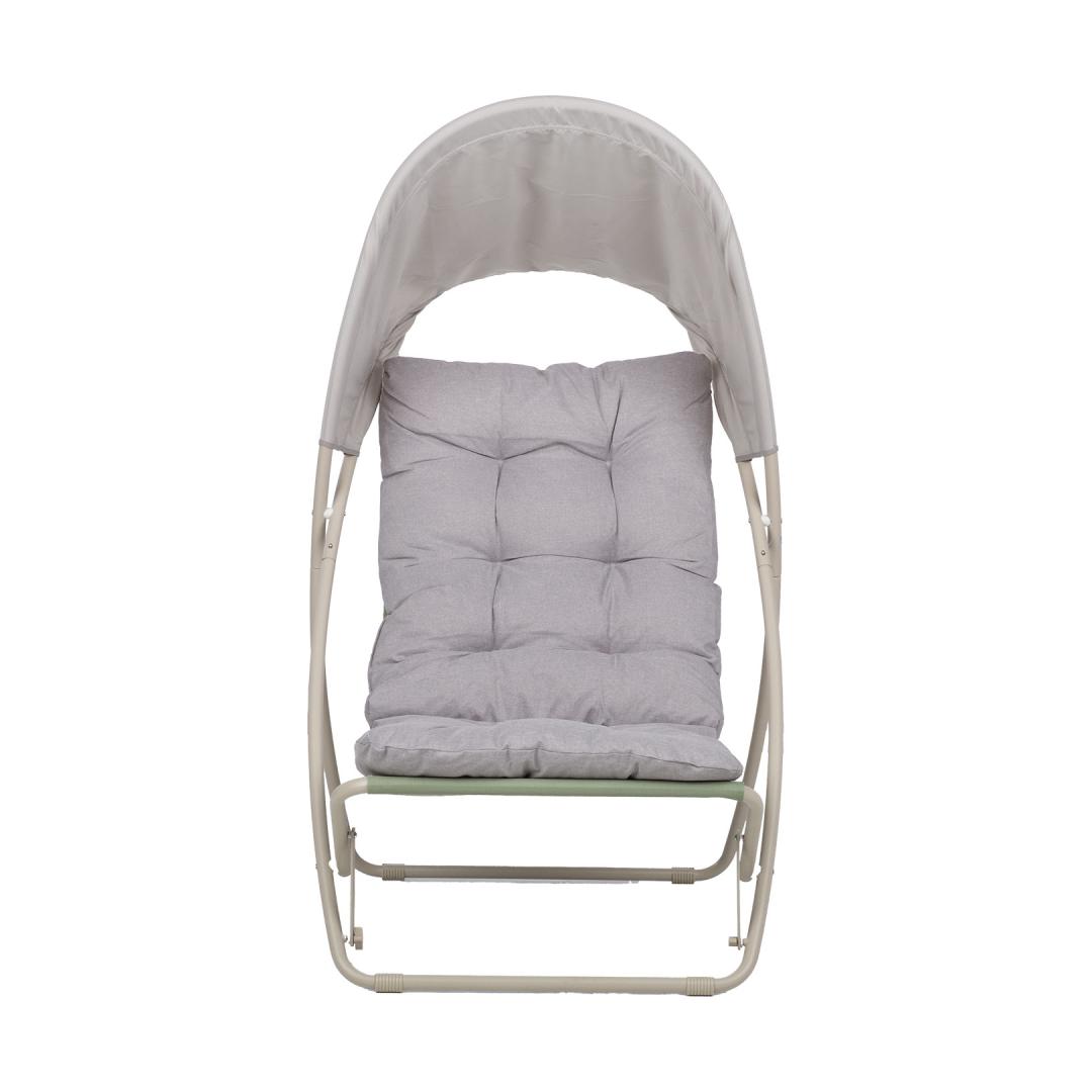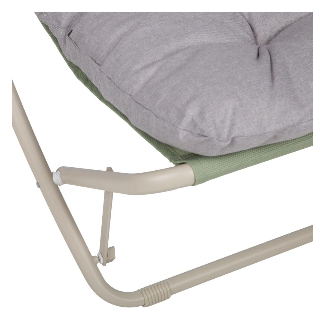 The frame of the rocking chairs made of steel and finished with a beige powder coating.